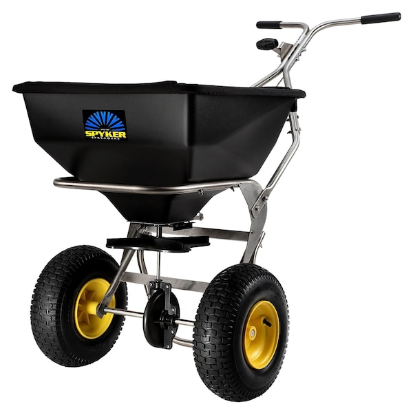 The 80-lb. capacity Spyker ERGO-Pro Walk-Behind Broadcast Spreader is perfect for spreading seed, fertilizer, ice melt and more. An innovative hopper design virtually eliminates bridging, allowing material to flow to empty with no shaking or bouncing required. The ergonomic, adjustable handle design is made to better match the operator, helping reduce user fatigue so you can get the job done in an easy, timely fashion.