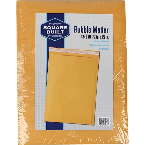 Square Built bubble mailers protects fragile items in the mail. Self seal flap for easy closure. Bubble Mailer features a peel-and-seal closure strip. This gold kraft mailer is lighter in weight while still providing an added layer of protection for shipping. Mailers are sold 5 per pack.