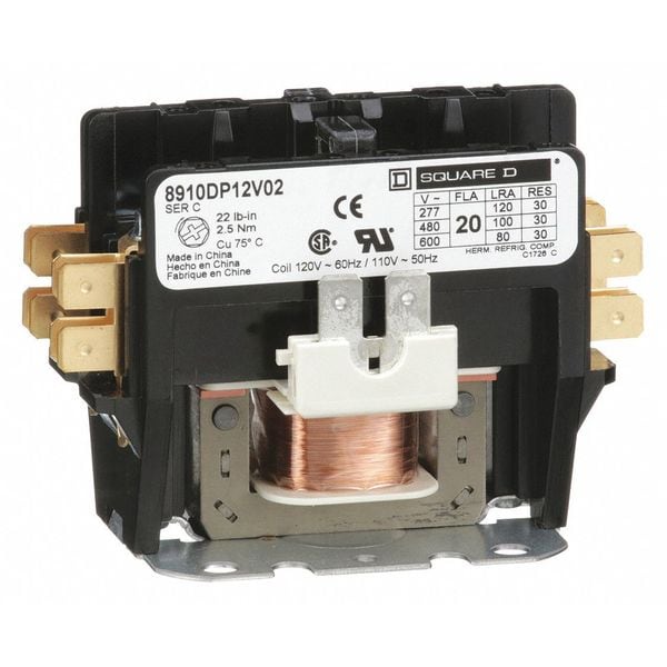 Definite Purpose Magnetic Contactor, Series Compact, Number of Poles 2, Phase 1