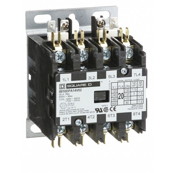 120VAC Non-Reversing Definite Purpose Contactor 4P 20A (Discontinued)
