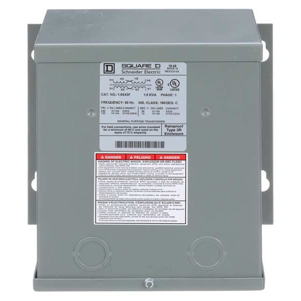 Buck Boost Transformer, Input Voltage - Transformer 120V AC, 240V AC, Output Voltage - Transformer 12V AC, 24V AC, VA Rating - Transformer 1.5 kVA, Phase - Electrical 1, Hz - Electrical 60 Hz, Mounting - Transformer Wall, Outdoor Rated - Transformer Yes, Temp. Rise 115 Degrees C, Enclosure Rating NEMA 3R, IP Rating IP54, Color Gray
