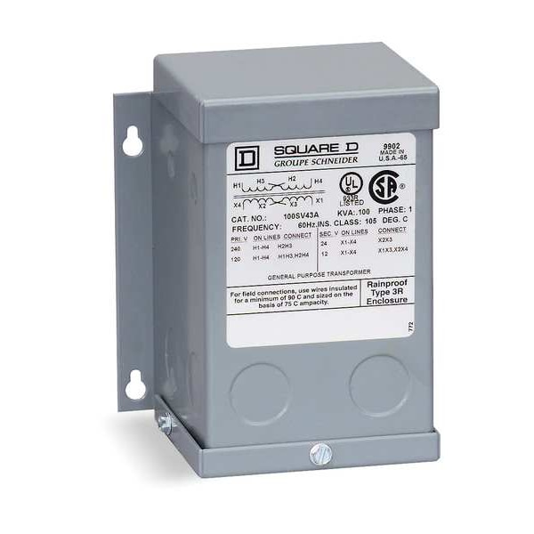 Buck Boost Transformer, Input Voltage - Transformer 120V AC, 240V AC, Output Voltage - Transformer 12V AC, 24V AC, VA Rating - Transformer 150 VA, Phase - Electrical 1, Hz - Electrical 60 Hz, Mounting - Transformer Wall, Outdoor Rated - Transformer Yes, Temp. Rise 55 Degrees C, Enclosure Rating NEMA 3R, IP Rating IP54, Color Gray