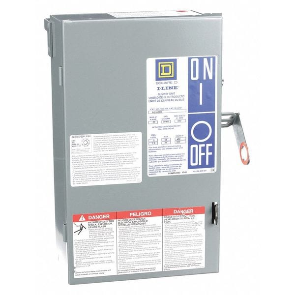 Busway Plug In Unit, Amps 30 A, Voltage 600V AC, Number of Poles 3, 3 Phase, 3 Wire with Ground, Enclosure Rating NEMA 1, For Use With SE Square D I-Line and I-Line II Busway, Fusible Yes, Fuse Class H, K, R, Breaker Type PQ, Height 8 7/8 in, Width 15 in, Depth 4 21/32 in, Standards CSA Certified, UL Listed
