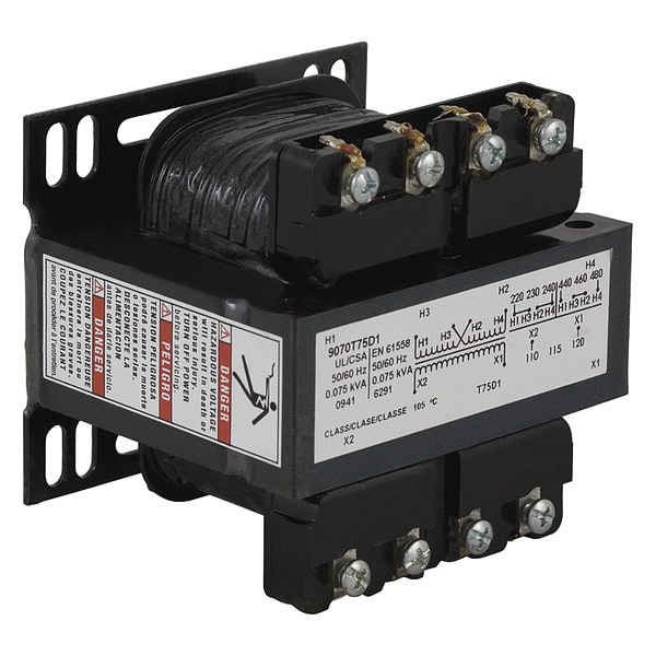 Control Transformer, 75 VA, Not Rated, 24V, 208/240/277/380/480V