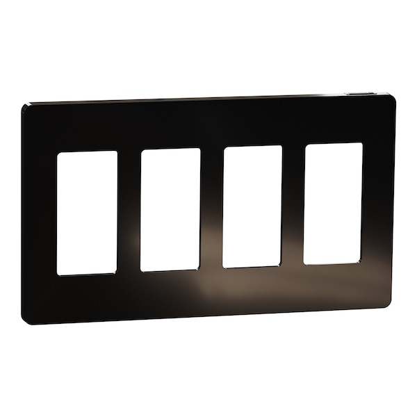Cover Frame, X Series, 4 Gangs, Screwles, Number of Gangs: 4 Plastic, Matte Finish, Black