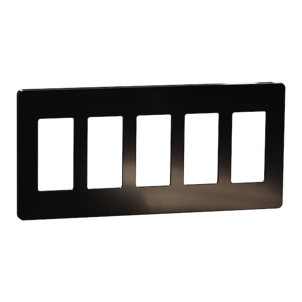 Cover Frame, X Series, 5 Gangs, Screwles, Number of Gangs: 5 Plastic, Matte Finish, Black