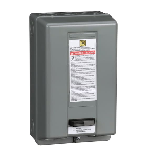 Definite Purpose Magnetic Motor Starter, Series Class 8911 Type DP, Coil Voltage 208-240V AC, Horsepower @ Three Phase - 600V AC 25 hp, Maximum Voltage Rating 600V AC, Horsepower @ Three Phase - 480V AC 20 hp, Horsepower @ Three Phase - 240V AC 10 hp, Horsepower @ Single Phase - 240V AC 7 1/2 hp, Horsepower @ Single Phase - 120V AC 3 hp, Current AC 40 A, Number of Poles 3, NEMA Enclosure Rating 1, Reversing Capability Non-Reversing, Phase Three, Overload Protection Type Melting Alloy