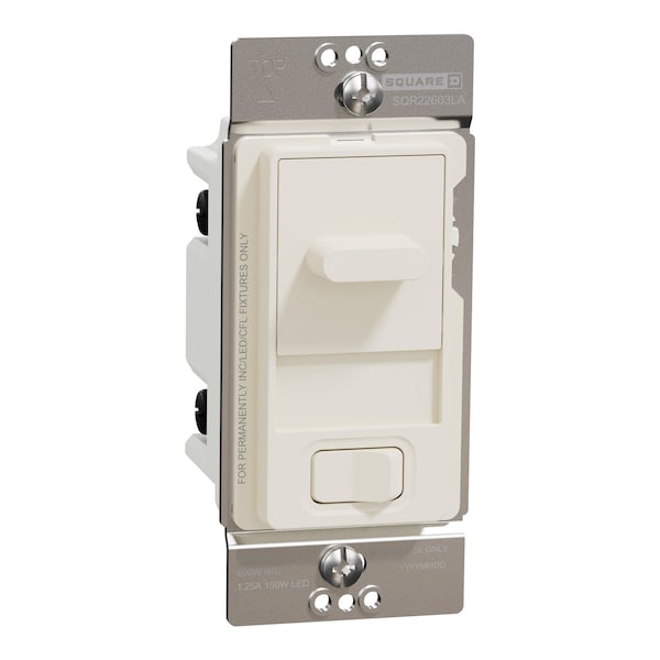 The Square D X Series 15A 500W Single-Pole/3-way Slider Dimmer refreshes a room with modern design. The rated operational voltage of this dimmer is 120V. The mechanism with fixing frame belongs to X Series aesthetic group. The connection are screw terminal. Enjoy the easy-to-use dimming to create the right lighting scene and to reduce your energy usage. It eliminates near-off flickering on LED lights. Complete the look with one of the Square D X Series cover plates (not provided) that easily snaps into place for a modern, flush-facing finish to your walls. It features protective painted surface treatment. This dimmer benefits from an elegant matt finishing, constituting an added value for your interior design. This dimmer has a width of 45 mm, a height of 103 mm and a depth of 50 mm. Its Ue rated operational voltage is 120VAC. Its Ie rated operational current is 15A. This device has load of 600W ideal for controlling incandescent and halogen bulbs. It has load of 150W for compact fluorescent and LED lamps. This device enables flush mounting. This device comes with matt surface finish, easy installations and easy-to-clean. This device is compliant with cULus certification.
