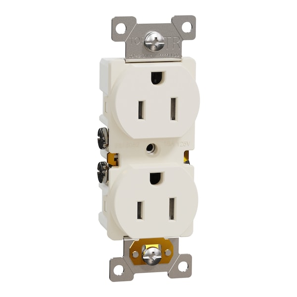 Duplex Straight Blade Receptacle, 5-15R, 15 A, 125V AC, 2 Pole, Flush Mount, Self-Grounded