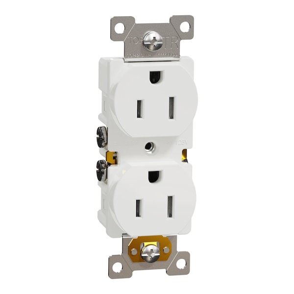 Duplex Straight Blade Receptacle, 5-15R, 15 A, 125V AC, 2 Pole, Flush Mount, Self-Grounded