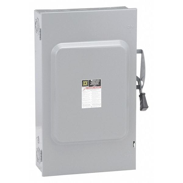 Safety Switch, Contact Form 3PST, Current Rating 200 A, Depth 8 1/4 in, Duty Standard, Enclosure Type Enclosed, Environment Indoor, For Fuse Class Class H, Class K, Class R, Fuse Kit (Class R) Mfr. No. HRK1020, Height 29 in, Horsepower @ 240V AC 60 hp, Housing Material Steel, IP Rating IP20, Mounting Style Surface Mount, NEMA Enclosure Rating 1, Neutral Assembly Included Yes