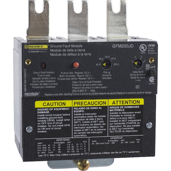 Ground fault module, PowerPacT J, micrologic, Add-on ground fault modules, 40 to 200A