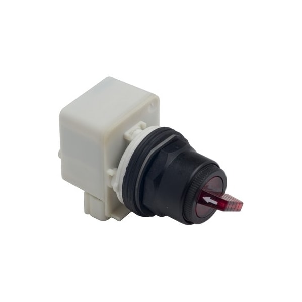 Illuminated selector switch head, Harmony 9001SK, plastic, standard handle, red, 30mm, 2 positions, stay put, 110-120V