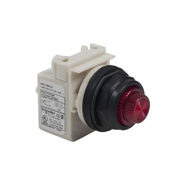 Illuminated selector switch head, Harmony 9001SK, plastic, standard handle, red, 30mm, 3 positions, spring return right to center, 110-120V