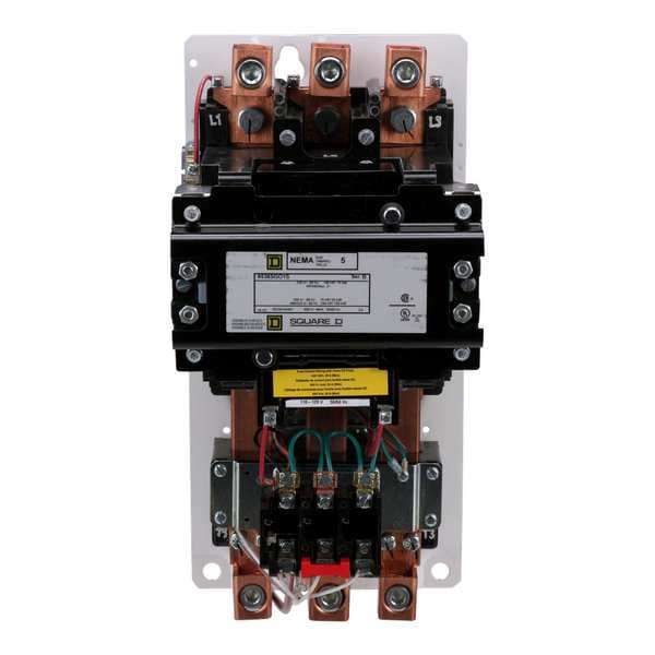 Magnetic Motor Starter, Includes Auxiliary Contacts No, Maximum Overload Relay Current Setting Not Applicable, Overload Protection Type Thermal, Minimum Overload Relay Current Setting Not Applicable, Number of Poles 3, Number of Auxillary Contacts 0, Phase Three, Operator None, Operator Function Not Applicable, Starter Style NEMA, Reversing Capability Non-Reversing, Maximum Voltage Rating 600V AC, Coil Voltage 110/120V AC, Horsepower @ Three Phase - 600V AC 200 hp