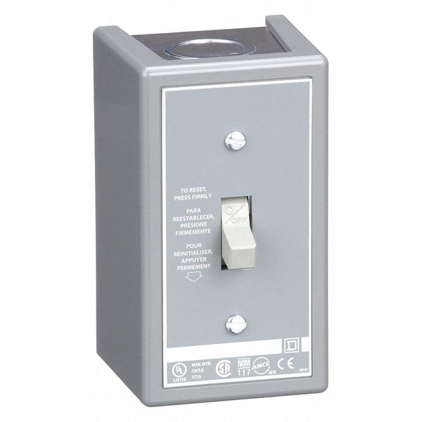 Manual Motor Starter, Horsepower @ Single Phase - 120V AC 1 hp, Horsepower @ Single Phase - 240V AC 1 hp, Maximum Voltage Rating 277V AC, Number of Poles 1, Operator Toggle Switch, Phase Single, Current AC 16 A, Series Class 2510 F Series, Maximum Overload Relay Current Setting Not Applicable, Minimum Overload Relay Current Setting Not Applicable, Mounting Style Surface, NEMA Enclosure Rating 1, Number of Required Thermals 1, Overload Protection Type Thermal, Starter Style NEMA