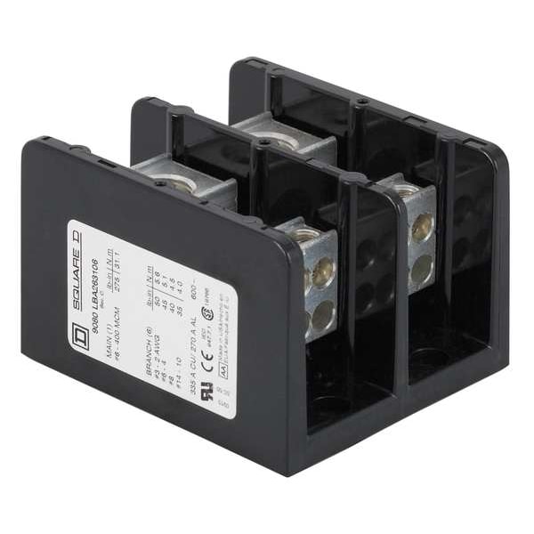 Power Distribution Block, For Conductor Material Aluminum, Copper, Line Connections/Pole 1, Line Side Stud Size Not Applicable, For Line Copper Wire Size - Minimum 14 AWG, For Line Copper Wire Size - Maximum 2 AWG, Load Connections/Pole 4, Load Side Stud Size Not Applicable, For Load Copper Wire Size - Minimum 18 AWG, For Load Copper Wire Size - Maximum 10 AWG, Maximum Current - Copper Conductor 115 A, Maximum Voltage 600 V AC/DC, Mounting Type Surface Mount, Number of Poles 2