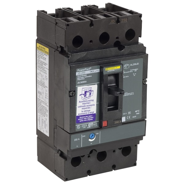 Molded Case Circuit Breaker, POWERPACT J Series, 200A, 3 Pole, 600V AC, 25kA at 240V AC