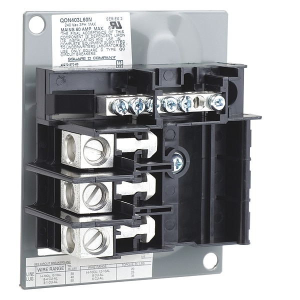Mounting Base, QO plug on circuit breakers Use With, 120/240V AC, 60A