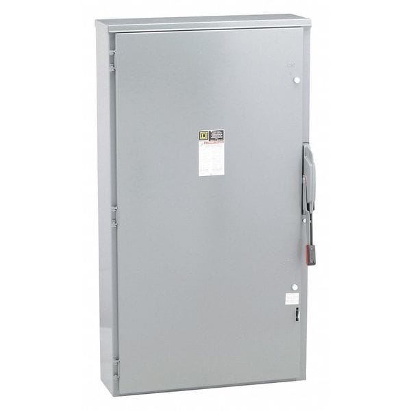 Safety Switch, Contact Form 3PST, Current Rating 600 A, Depth 10 1/8 in, Duty Heavy Duty, Environment Indoor/Outdoor, For Fuse Class Not Applicable, Height 50 1/4 in, Horsepower @ 240V AC 200 hp, Horsepower @ 480V AC 400 hp, Horsepower @ 600V AC 500 hp, Housing Material Steel, IP Rating IP14, Mounting Style Surface Mount, NEMA Enclosure Rating 3R, Neutral Assembly Included No