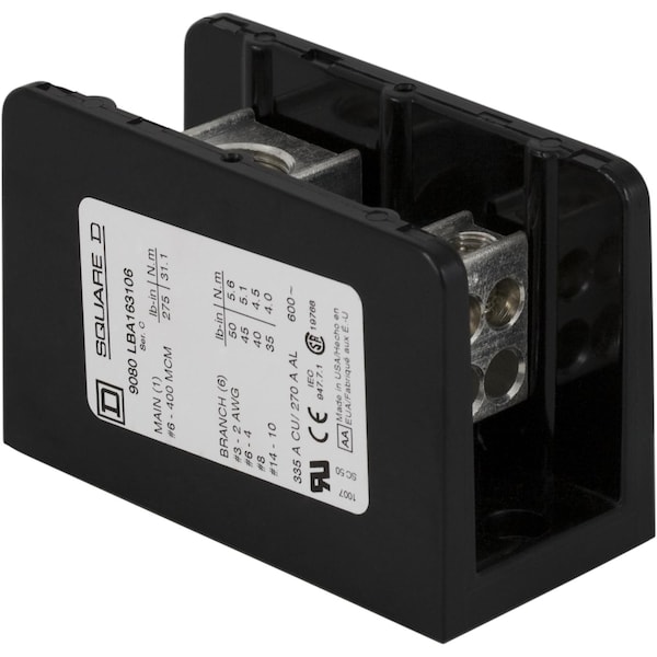 Power Distribution Block, 1 Pole, 380 A Copper, 600 V AC/DC, Surface Mount