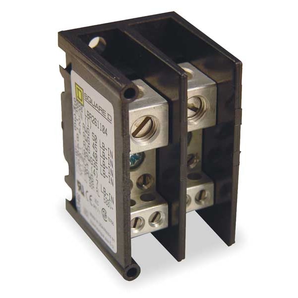Power Distribution Block, For Conductor Material Aluminum, Copper, Line Connections/Pole 1, Line Side Stud Size Not Applicable, For Line Copper Wire Size - Minimum 6 AWG, For Line Copper Wire Size - Maximum 350 kcmil, Load Connections/Pole 1, Load Side Stud Size Not Applicable, For Load Copper Wire Size - Minimum 6 AWG, For Load Copper Wire Size - Maximum 350 kcmil, Maximum Current - Copper Conductor 310 A, Maximum Voltage 600 V, Mounting Type Surface, Number of Poles 2, Overall Depth 2.61 in