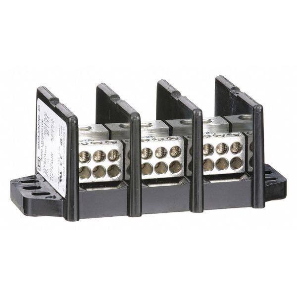 Power Distribution Block, For Conductor Material Aluminum, Copper, Line Connections/Pole 1, Line Side Stud Size Not Applicable, For Line Copper Wire Size - Minimum 14 AWG, For Line Copper Wire Size - Maximum 2/0 AWG, Load Connections/Pole 6, Load Side Stud Size Not Applicable, For Load Copper Wire Size - Minimum 14 AWG, For Load Copper Wire Size - Maximum 4 AWG, Maximum Current - Copper Conductor 175 A, Maximum Voltage 600 V, Mounting Type Surface, Number of Poles 3, Overall Depth 2.06 in