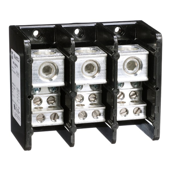 Power Distribution Block, For Conductor Material Aluminum, Copper, Line Connections/Pole 1, Line Side Stud Size Not Applicable, For Line Copper Wire Size - Minimum 6 AWG, For Line Copper Wire Size - Maximum 400 kcmil, Load Connections/Pole 4, Load Side Stud Size Not Applicable, For Load Copper Wire Size - Minimum 14 AWG, For Load Copper Wire Size - Maximum 2 AWG, Maximum Current - Copper Conductor 335 A, Maximum Voltage 600 V, Mounting Type Surface, Number of Poles 4, Overall Depth 2.61 in