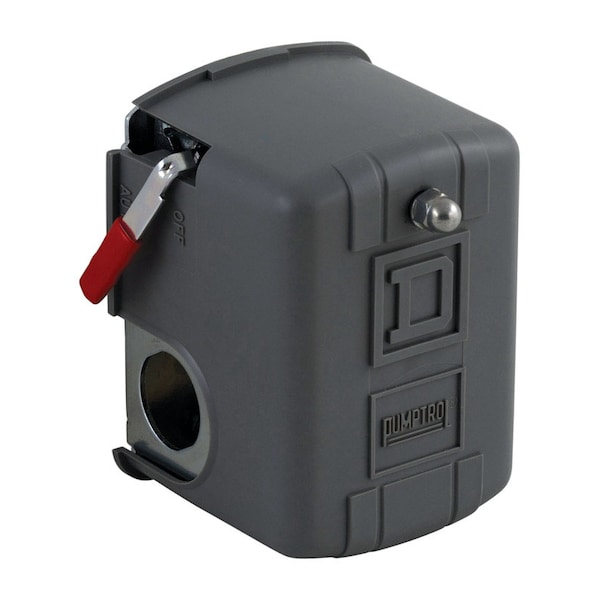 This Square D Pumptrol FSG2J21M4CP electromechanical pressure switch is the most trusted brand in residential, commercial and industrial pumping applications. For over 75 years, Square D pressure switches continue to meet the needs of our customers. This switch has a 30 PSI to 50 PSI pressure setting range activates an electrically driven water pump within a power circuit when the adjustable rising and falling thresholds are reached. The NEMA 1 enclosure has a 1/4 inch NPSF internal fluid connection and screw clamp terminals. The switch works with a 1.5 HP or less pump. The adjustable differential range is 15 psi to 30 psi and the cut-out range is 20 PSI to 65 PSI. The low-pressure cut-off (auto-start-off) operates at approximately 10 psig below the cut-in and will turn off the pump. The enclosure is National Electrical Manufacturers Association (NEMA) Type 1 and Ingress Protection (IP) 20 rated. The switch is Underwriters Laboratory (UL) Listed and Canadian Standards Association (CSA) Certified. Square D Pumptrol pressure switches are manufactured by Schneider electric.