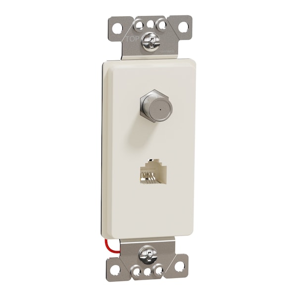 - X Series combination RJ11 Telephone Jack and Cable TV F Coupler Decorator Strap Light Almond