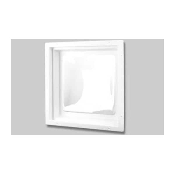 6 Inch High Bubble Type Dome; Mounts Inside RV; Square; For 22 Inch Length x 22 Inch Width Opening; 24 Inch Length x 24 Inch Width Flange; White Frame And Clear Top; Polycarbonate; Without Blind; Single