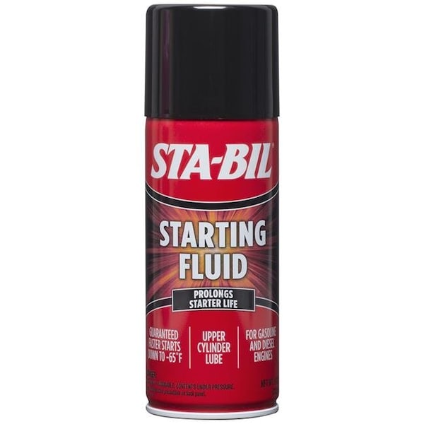Starting Fluid is a special formula starting fluid with upper cylinder lube and corrosion inhibitor. It is for use in all gasoline and diesel engines in cars, trucks, tractors, buses, marine engines.