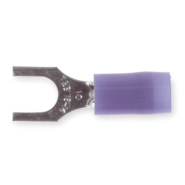 Fork Terminal, #10 Stud Size, 14 AWG, 600 V, Nylon Insulated, Blue, Crimp Termination Only, 100 PK