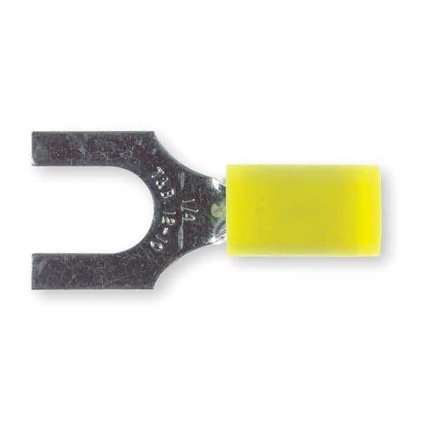 Fork Terminal, 1/4 in Stud Size, 10 AWG, 600 V, Nylon Insulated, Yellow, Crimp Termination Only