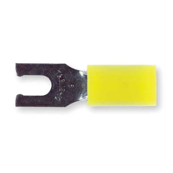 Fork Terminal, #6 Stud Size, 10 AWG, 600 V, Nylon Insulated, Yellow, Crimp Termination Only, 50 PK