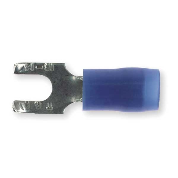 Fork Terminal, #6 Stud Size, 14 AWG, 600 V, Nylon Insulated, Blue, Crimp Termination Only, 100 PK