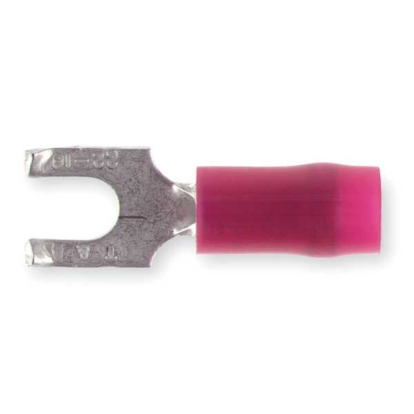 Fork Terminal, #6 Stud Size, 16 AWG, 600 V, Nylon Insulated, Red, Crimp Termination Only, 100 PK