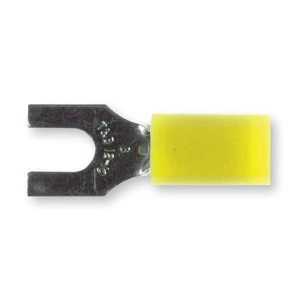 Fork Terminal, #8 Stud Size, 10 AWG, 600 V, Nylon Insulated, Yellow, Crimp Termination Only, 50 PK