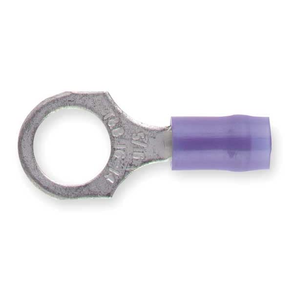 Ring Terminal, 5/16 in Stud Size, 14 AWG, 600 V, Nylon Insulated, Blue, Crimp Termination Only