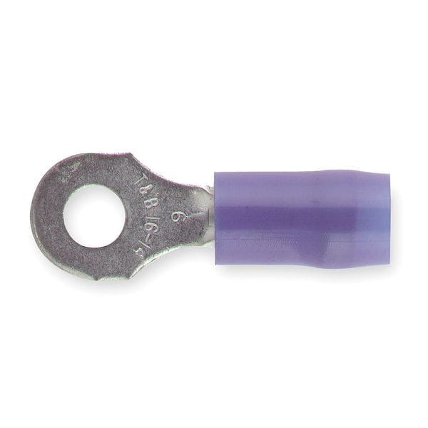 Ring Terminal, #6 Stud Size, 14 AWG, 600 V, Nylon Insulated, Blue, Crimp Termination Only, 100 PK