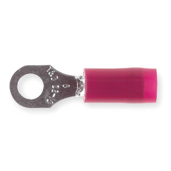 Ring Terminal, #6 Stud Size, 16 AWG, 600 V, Nylon Insulated, Red, Crimp Termination Only, 100 PK