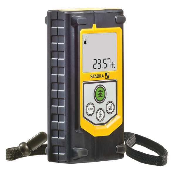 Laser Distance Meter, Accuracy +/-3/32 in, Features Large Figures and Illuminated Display, Impact-Resistant Housing with Shock-Absorbing Stabila Soft Grip Casing, Fulfils The New International Standard ISO 16331-1 Certificate