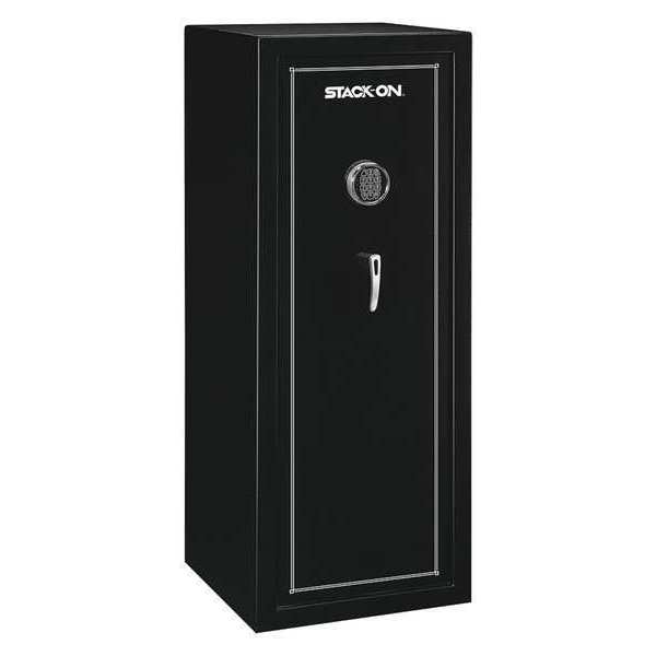 Gun Safe, Color Black, Net Weight 168 lb, Capacity 10.92 cu ft, Fire Rating Not Rated, Water Endurance 0, Material Steel, Finish Powder Coated, Finger Print Memory No, Lock Style Electronic, 1 Number of Shelves, Number of Bolts 5, Outside Height 55 in, Outside Width 20 1/8 in, Outside Depth 20 7/8 in, Inside Height 54 3/4 in, Inside Width 20 in, Inside Depth 16 3/4 in, Door Opening Height 50 7/8 in, Door Opening Width 16 5/8 in, Door Plate Thickness 2 mm, Wall Thickness 2 mm, Holds (16) Guns