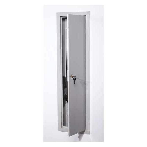 Wall Cabinet Safe, Off White, Net Weight 33 lb, Capacity 10 cu ft, None Fire Rated, Water Endurance 0, Material Steel, Finish Powder Coated, Number of Shelves 3 Adjustable, Lock Style Keyed, Number of Bolts 0, Outside Height 55 in, Outside Width 14 in, Outside Depth 4 in, Inside Width 20 1/4 in, Door Plate Thickness 5/32 in, Holds Documents, Records and Valuables, Includes Double Bitted Key Lock, Hardware, Max. User Codes 1, Number of Drawers 0