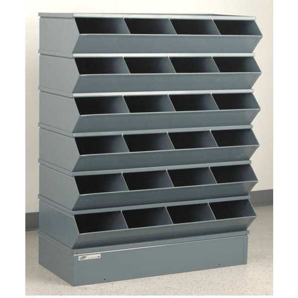 Sectional Bin Unit, Steel, High Gloss, Gray, Overall Depth 15 in, Overall Height 51 in, Overall Width 37 in, Load Capacity per Shelf 5,000 lb, Whole Unit Load Capacity 1,000 lb, Base Type Standard, Base Height 5 3/8 in, Number of Compartments 24, Compartment Depth 18 3/4 in, Compartment Height 7 1/2 in, Compartment Width 9 in, Includes (6) 4-Compartment #3 Sectional Stacking Bin Units, Base, Top Cover