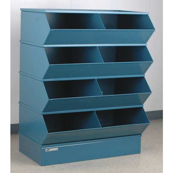 Sectional Bin Unit, Steel, High Gloss, Blue, Overall Depth 24 in, Overall Height 44 in, Overall Width 37 in, Load Capacity per Shelf 5,000 lb, Whole Unit Load Capacity 1,000 lb, Base Type Standard, Base Height 5 3/8 in, Number of Compartments 8, Compartment Depth 24 in, Compartment Height 11 in, Compartment Width 18 in, Includes (4) 2-Compartment #5 Sectional Stacking Bin Units, Base, Top Cover