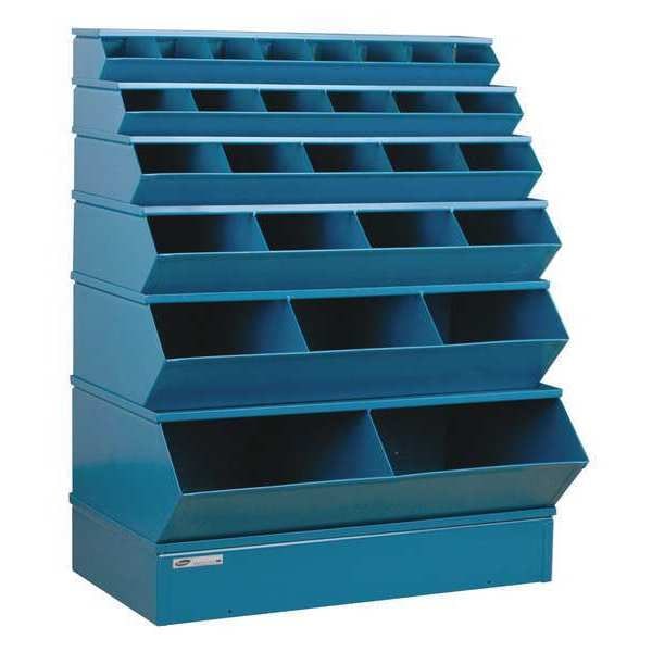 Sectional Bin Unit, Steel, High Gloss, Blue, Overall Depth 24 in, Overall Height 53 in, Overall Width 37 in, Load Capacity per Shelf 5,000 lb, Whole Unit Load Capacity 1,000 lb, Base Type Standard, Base Height 5 3/8 in, Number of Compartments 28