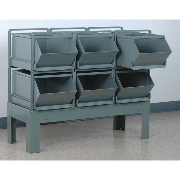 Steel Sectional Stacking Bin, 38 in D x 32 in H x 20 1/2 in W, 2 Shelves, Gray