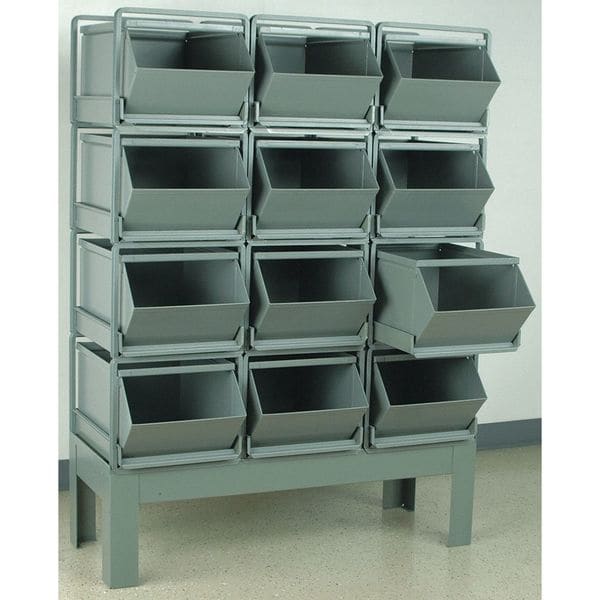 Steel Sectional Stacking Bin, 47 in D x 63 in H x 24 in W, 4 Shelves, Gray