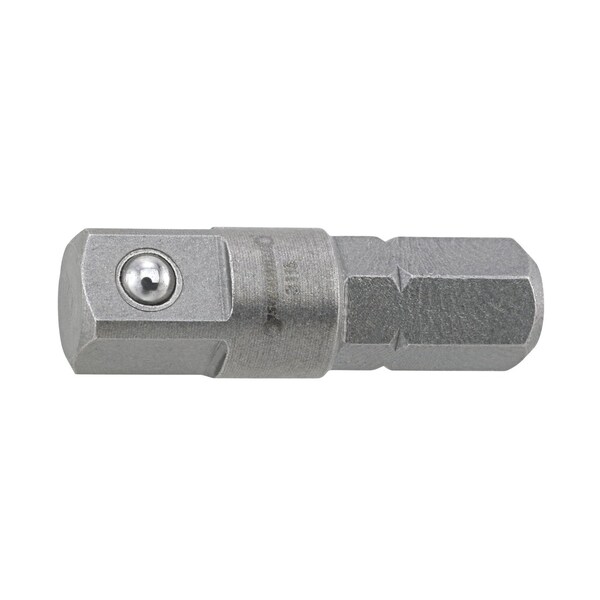 Bit connector, manually operated, input hex 1/4'', output square 1/4'', L. 25 mm